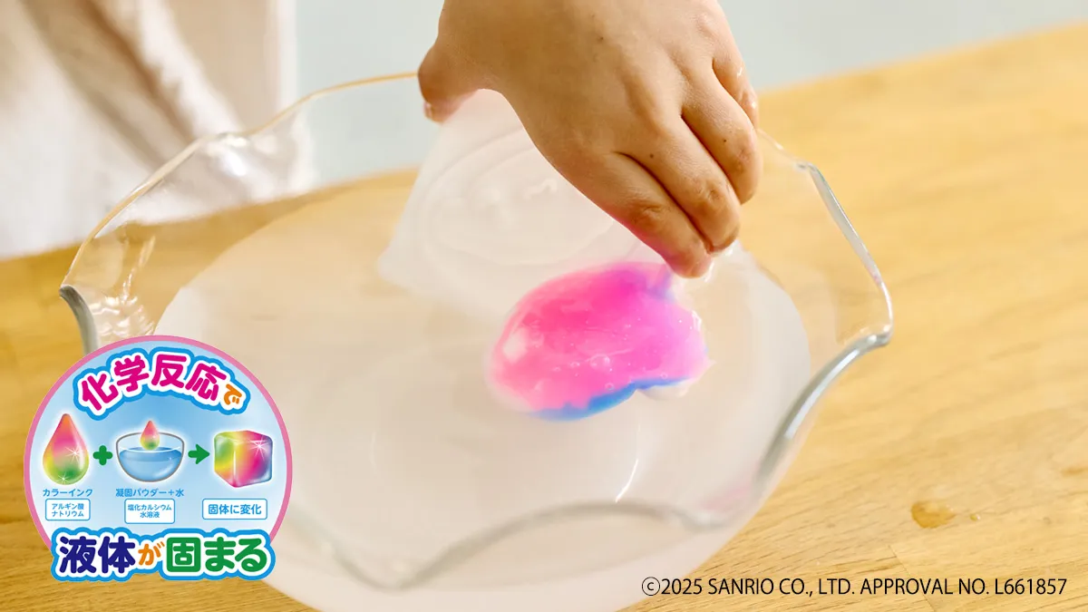 今回は人気のキャラクターを採用。サンリオキャラクターズの中でも人気の高い「クロミ」と「シナモロール」が仲間入りしました。キュートな表情やスイーツモチーフに変身したデザインの“型”、グリッター入り“キラキラインク”、そしてシリーズ初のオリジナルチャームキットなどがセットになった、たっぷり遊べる内容に。自由研究・おうち時間・プレゼントにもおすすめの商品です。